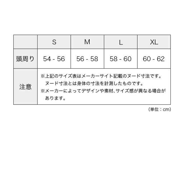 ■サイズ:頭周り:S(54~56cm)、M(56~58cm)、L(58~60cm)、XL(60~62cm)