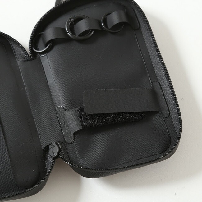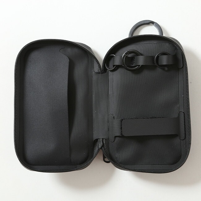 素材には、環境に配慮したリサイクルポリエステルを使用しています。カギだけではなく、車のスマートキーにも対応するサイズで、本体内部にはスリット式カードホルダーとカギの固定用テープを装備。