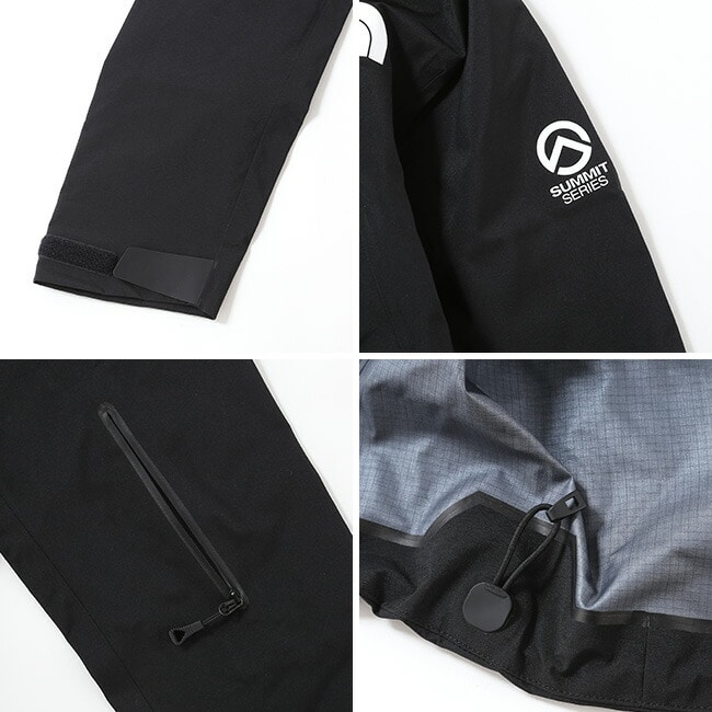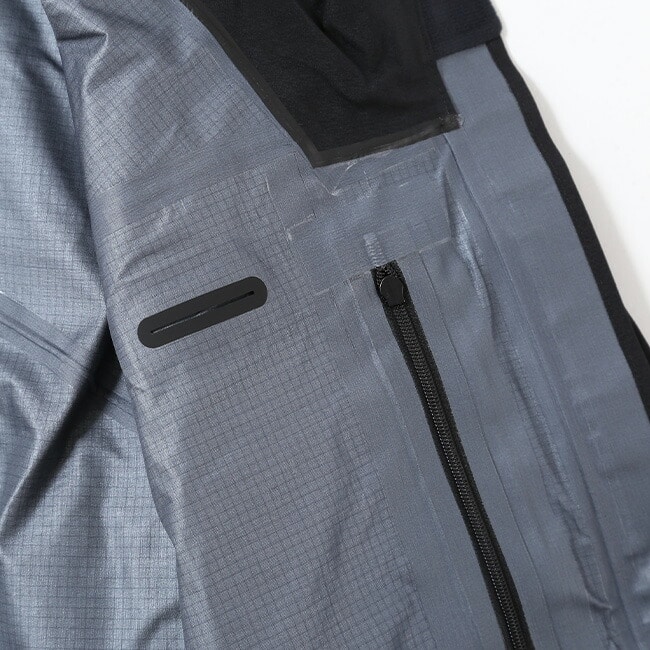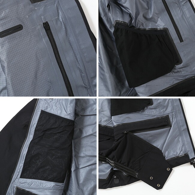 ヘルメット対応のフードやゴーグル収納用のポケット、無線対応ポケットなど、厳しい環境下での行動をサポートする機能を集約。