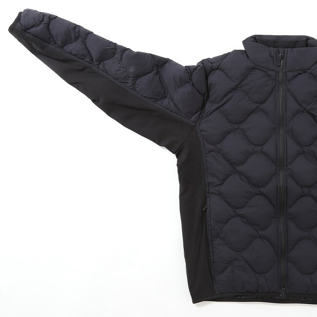 前身頃をはっ水素材、脇、袖下をストレッチ素材で切替