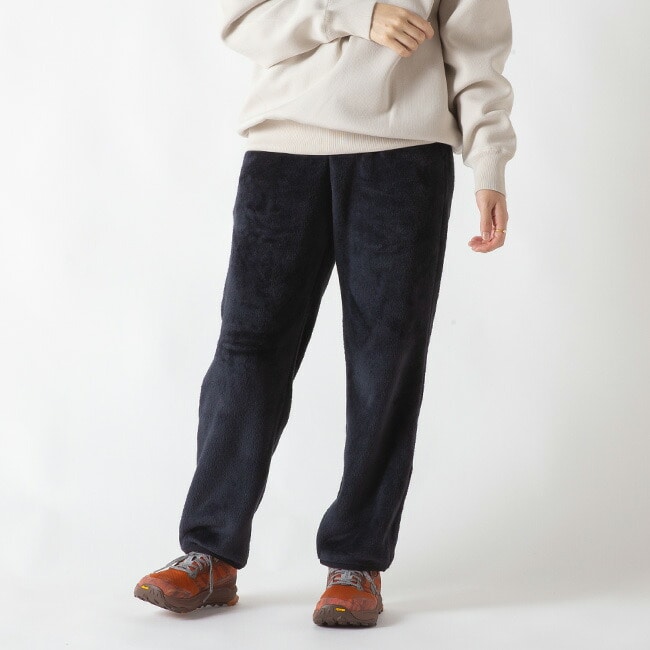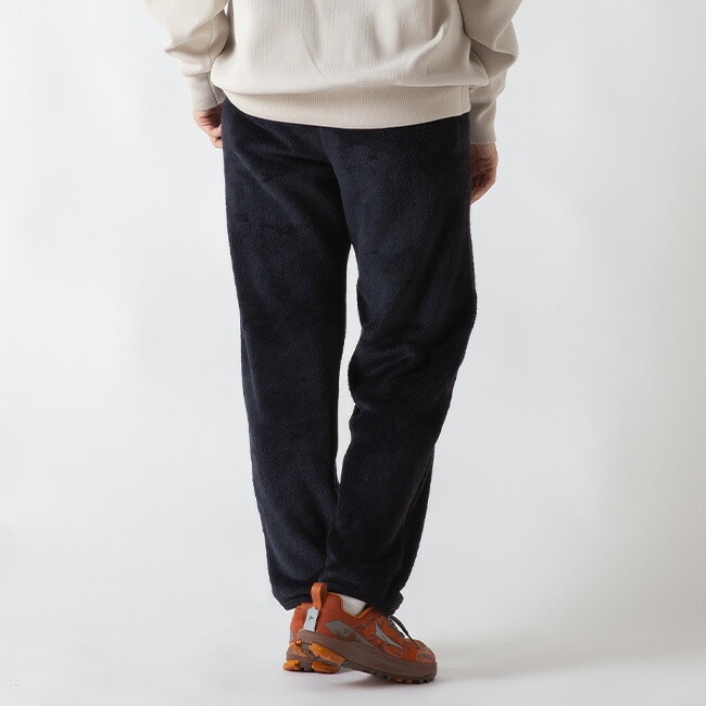 素材には、登山の保温着にも使われるほど保温力が高いフリース素材「バーサミッド」を採用。ゆとりのあるリラックスフィットと、やわらかく長い毛足の肌触りが心地よく、快適に穿き続けられます。