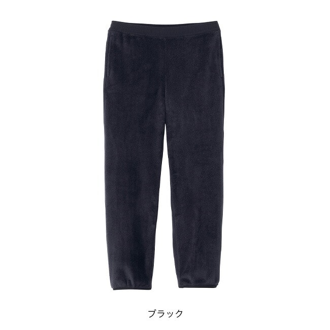 保温性が高く肌触りのいい、毛足が長いフリース生地のパンツ