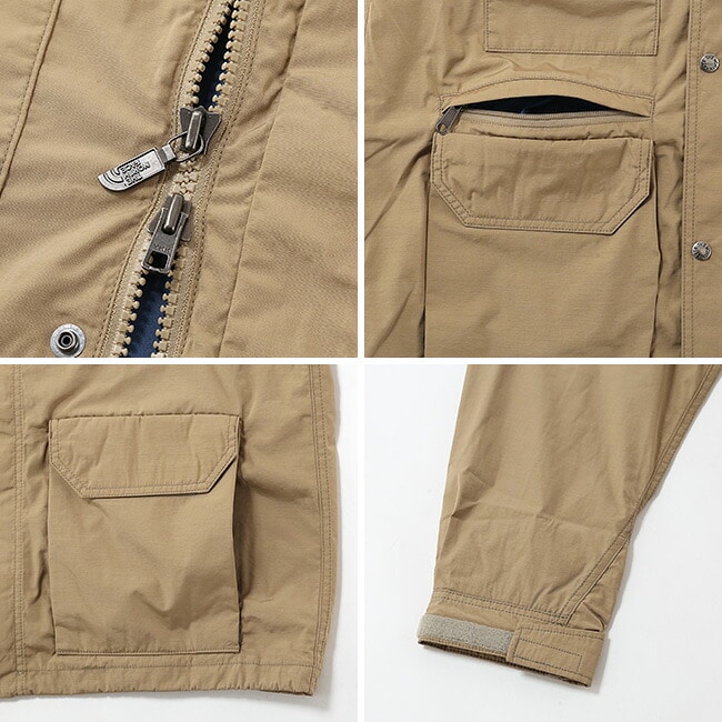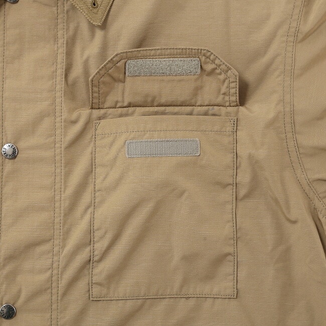 ポケットは左右の胸とサイドにマチ付きのフラップポケットを配置。