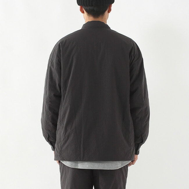 襟はオケージョンに応じて開衿とコーチジャケット仕様の2WAYでの着用が可能です。