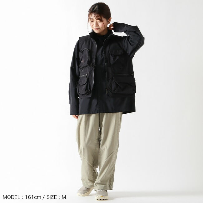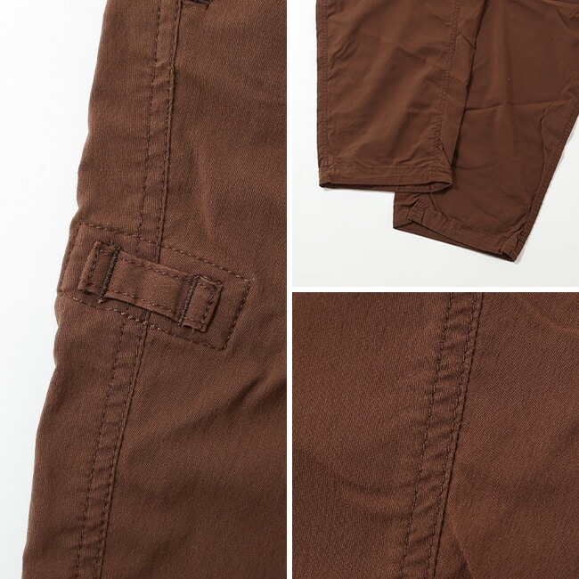 ストレッチ性を備えているため動きやすく、さらにはっ水加工を施すことで小雨や汚れを弾き、アウトドアシーンでも快適な着用感をキープします。