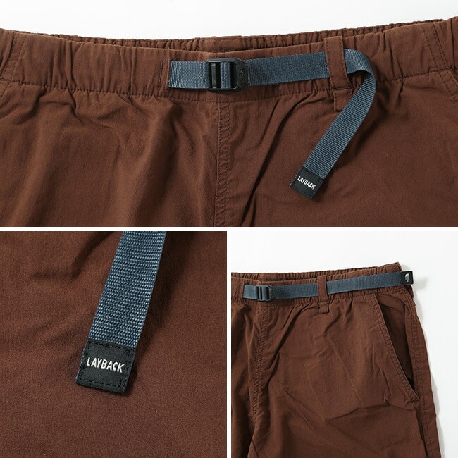 ベルトエンドには「LAYBACK」のネームをあしらい、細部までブランドの世界観を感じられるデザインです。