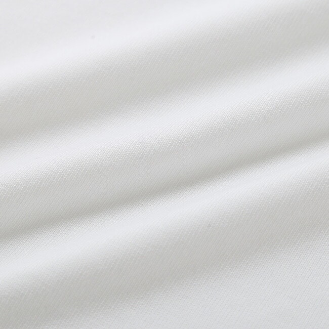 素材には、速乾性に優れたポリエステルと、風合いのよいコットンを混紡したニット生地を採用。