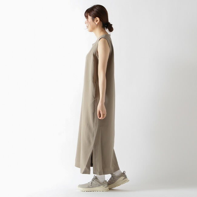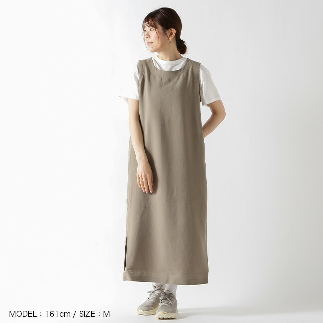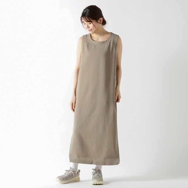 通気性・遮熱性・UVカット機能を兼ね備えた、軽やかで快適な着心地のワンピース。ナチュラルな風合いとシンプルなデザインで、デイリーからトラベルシーンまで幅広く活躍する一着です。
