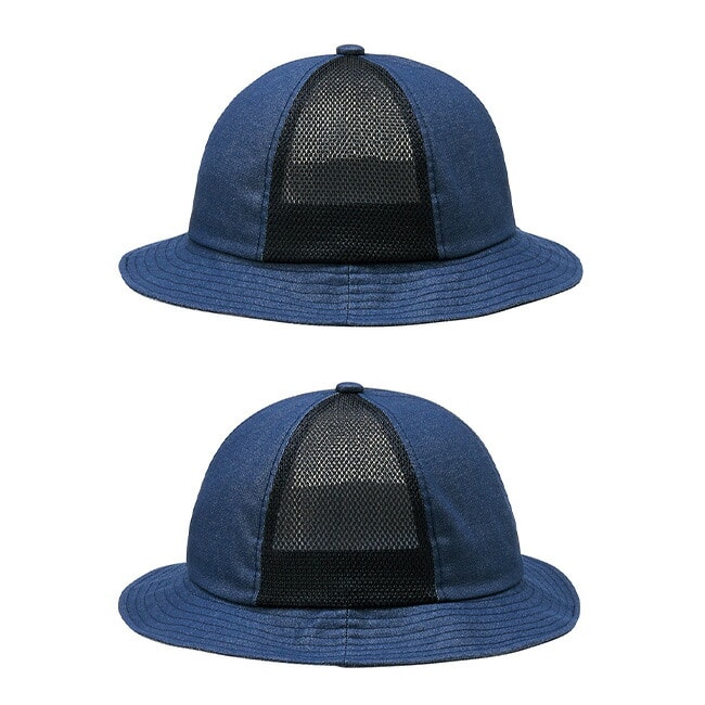 デニム調の本体に通気性のよいメッシュ素材を組み合わせ、暑い季節も快適に着用できるハットです。本体には綿65%・ポリエステル35%の混紡素材を使用し、やわらかくやさしい被り心地を実現。