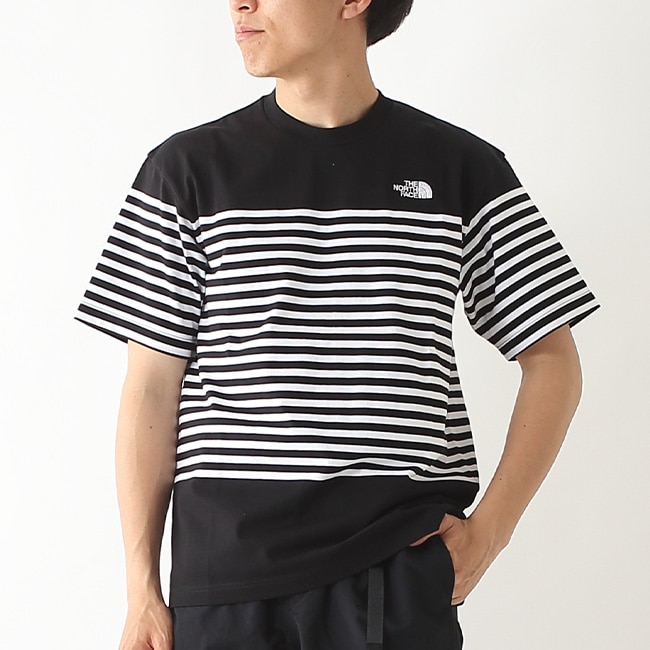肌触りのよいコットンと、速乾性を持つリサイクルポリエステルを使用した、ボーダー柄のニット生地のTシャツ。