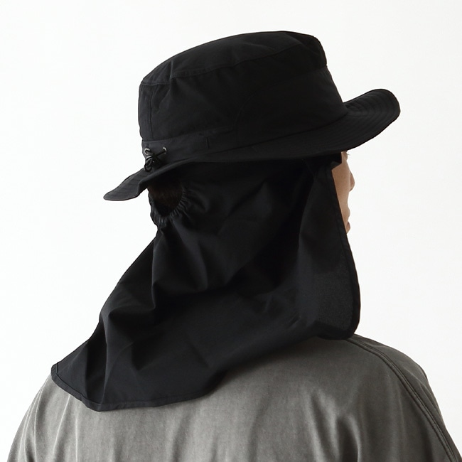 スナップボタンで簡単に取り外しができるシールド部は、首まわりの日焼け対策に効果的。