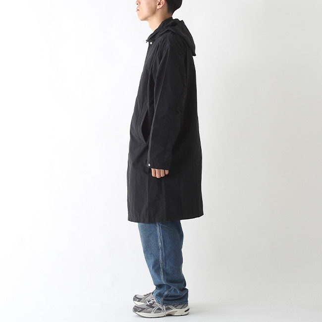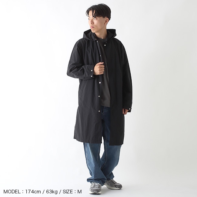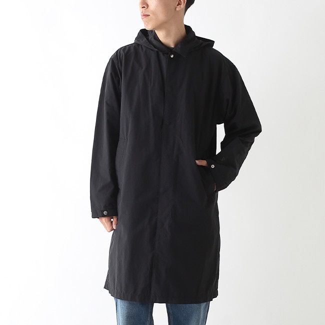 フードを外せばシンプルなステンカラーになり、さまざまなスタイルに活躍します。