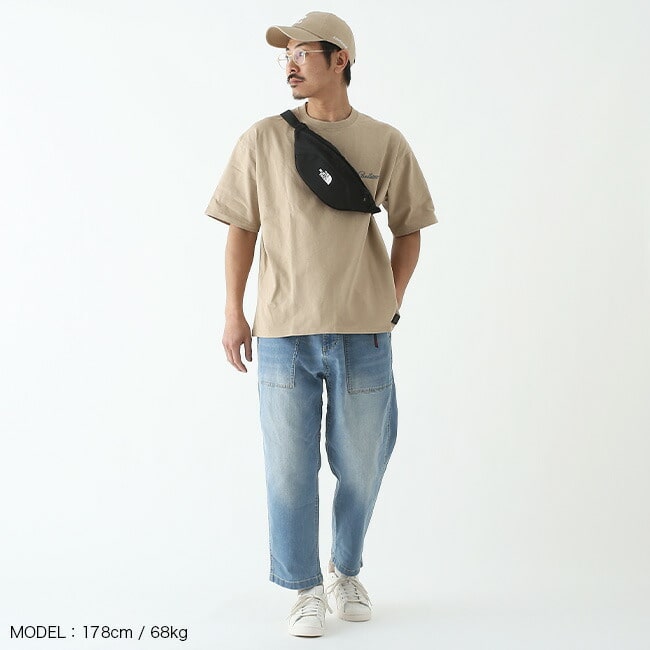 財布や携帯電話など、日常の身の回りの小物の収納に便利な1リッター容量のスリムなウエストバッグ
