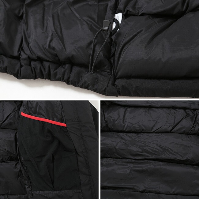 表地には防風性のあるGORE-TEX WINDSTOPPER 2層素材を採用しています。表地はバッフルの角にダーツを入れて立体感を出す構造。