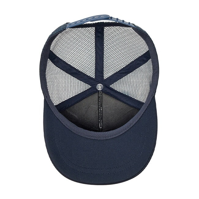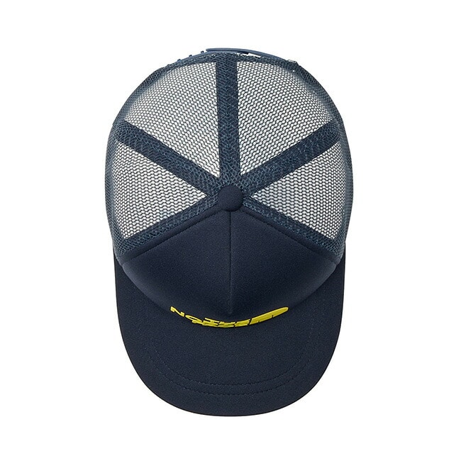 フロントに大きくロゴを配置した、スタンダードなシルエットのメッシュキャップ