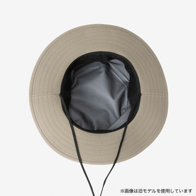 雨に濡れても形状を保持しやすいやや硬めの広いツバを採用することで、雨の吹き込みを軽減します。