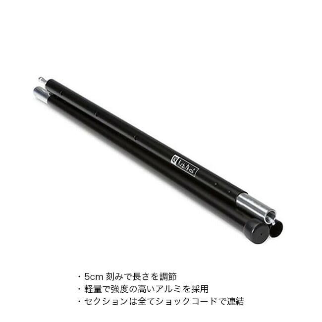 5cm刻みで長さを調節できるため、さまざまな設営スタイルに柔軟に対応可能です。