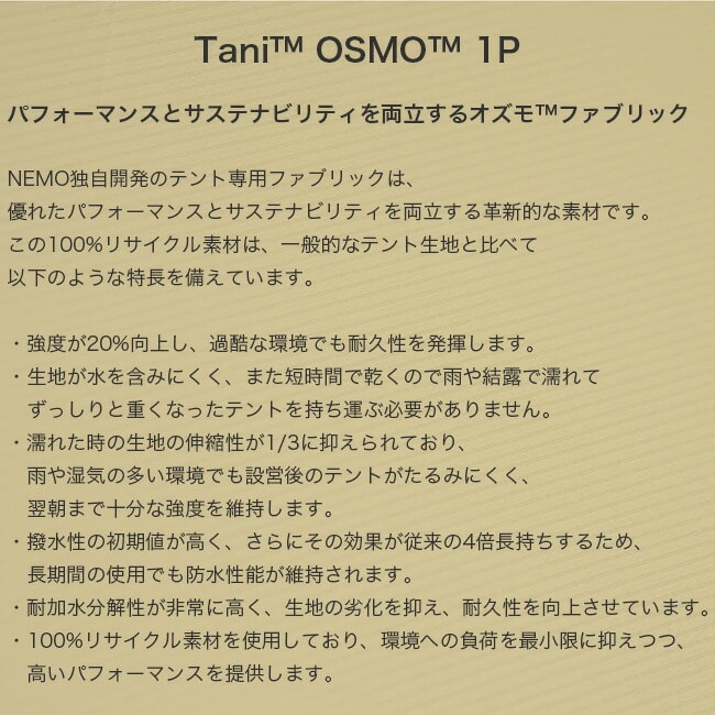 また、タニ オズモ™は環境に優しいテントとしても評価されています。