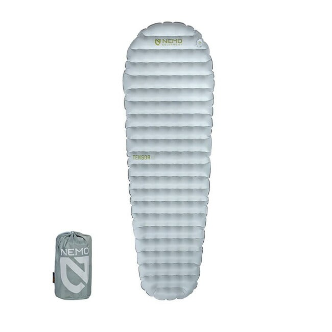 テンサー™ エリートはグラム単位の軽量化を追求するULハイカーのためにNEMOが提案するソリューションです。このモデルのために作られたカスタムメイドの10D CORDURA®ナイロンと1枚のサーマルミラー™断熱フィルムを使用し、レギュラーサイズで240gという驚異的な軽さとパックサイズを実現しました。