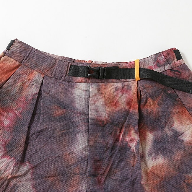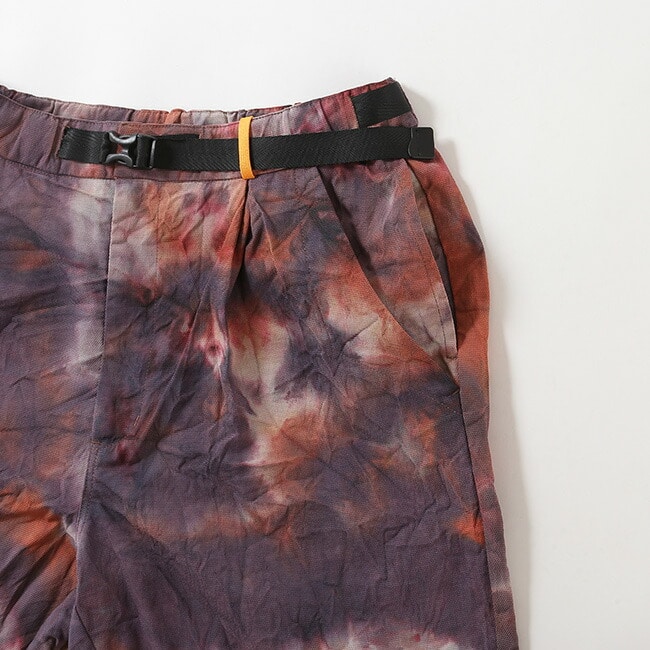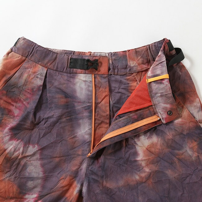 アウトドアからタウンユースまで、さらりと穿くことができる1着です。生地は手染めなので1点ごとに風合いも異なります。