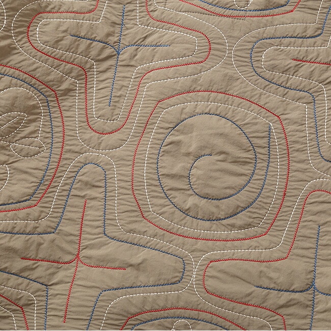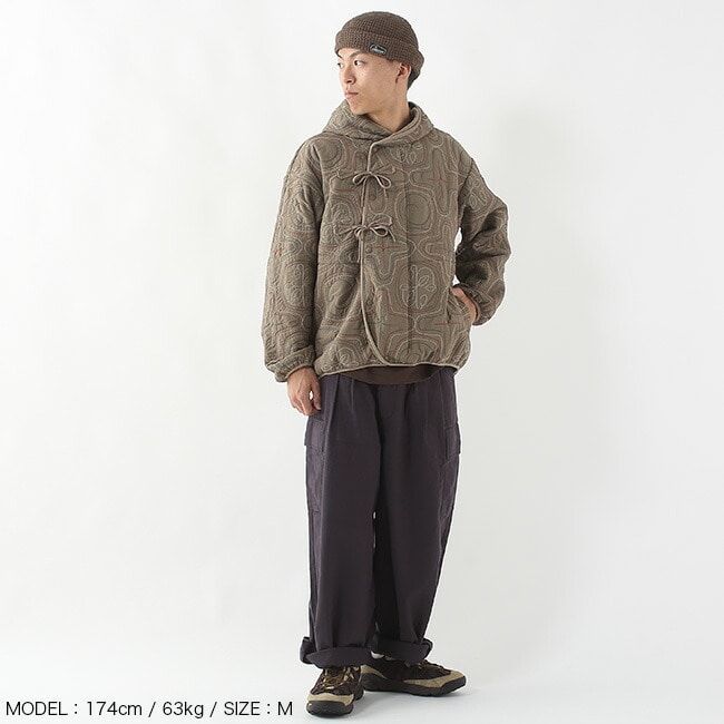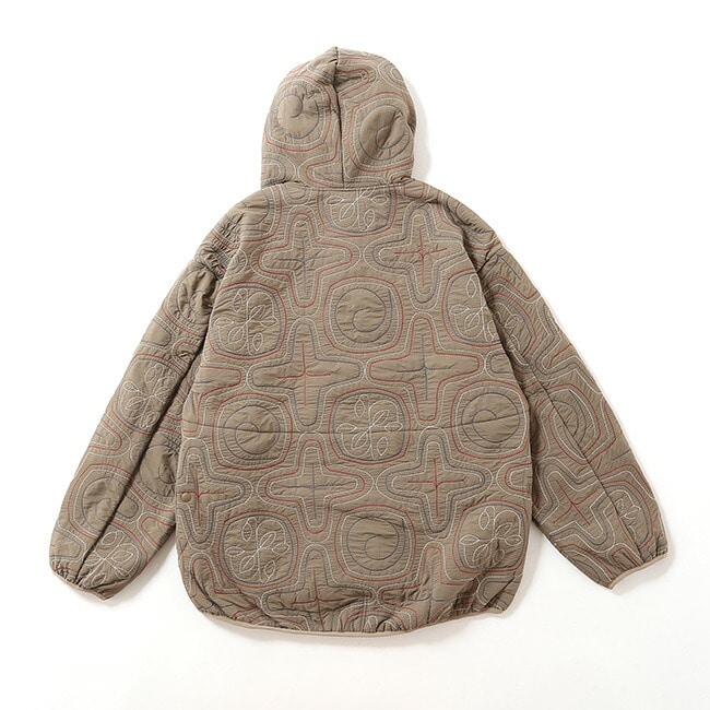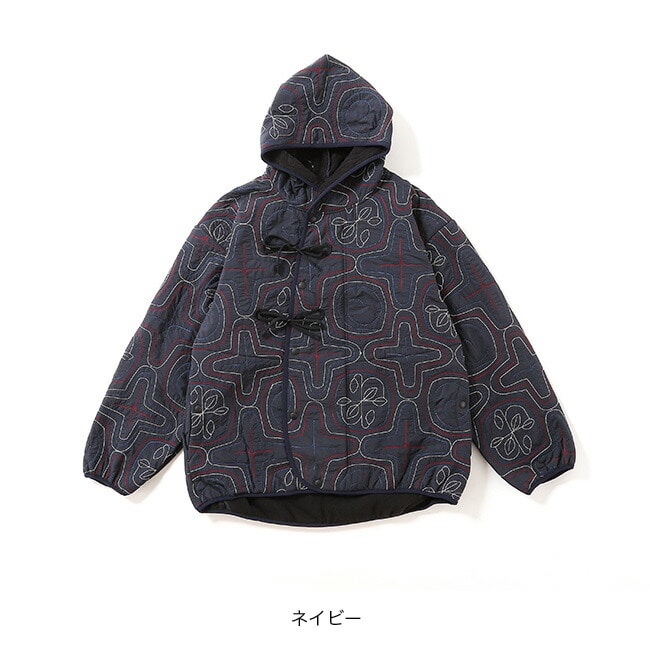 日本古来のアイヌ柄イメージのキルティングを施したフードジャケット。