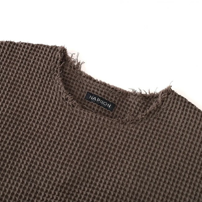 シーム切りっぱなしのラフな極厚ワッフル素材カットソー