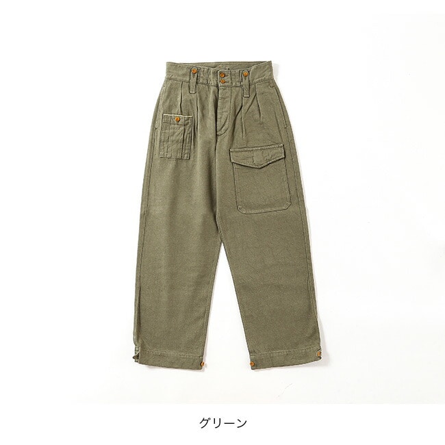 1940年代のブリティッシュ・アーミーのバトルドレスパンツをベースに、1960年代のローデシア軍のバトルドレスパンツの要素をドッキングさせて、日本の生活様式に合うようにアレンジしました。
