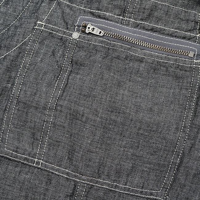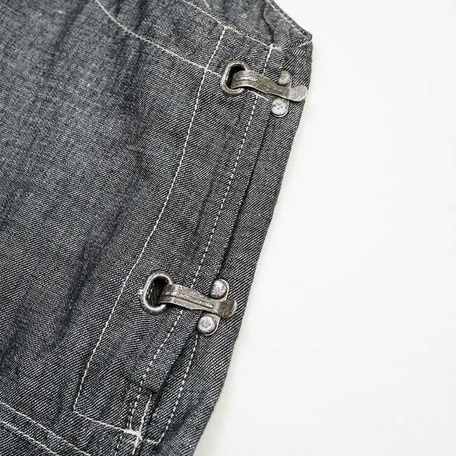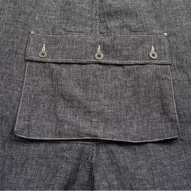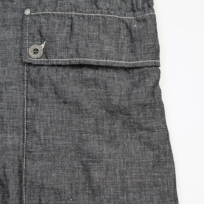 インディゴの色味はヴィンテージワークウェアを思わせる深みを持ちながら、リネン特有の自然なムラ感によって、着込むほどに豊かな表情へと育っていきます。