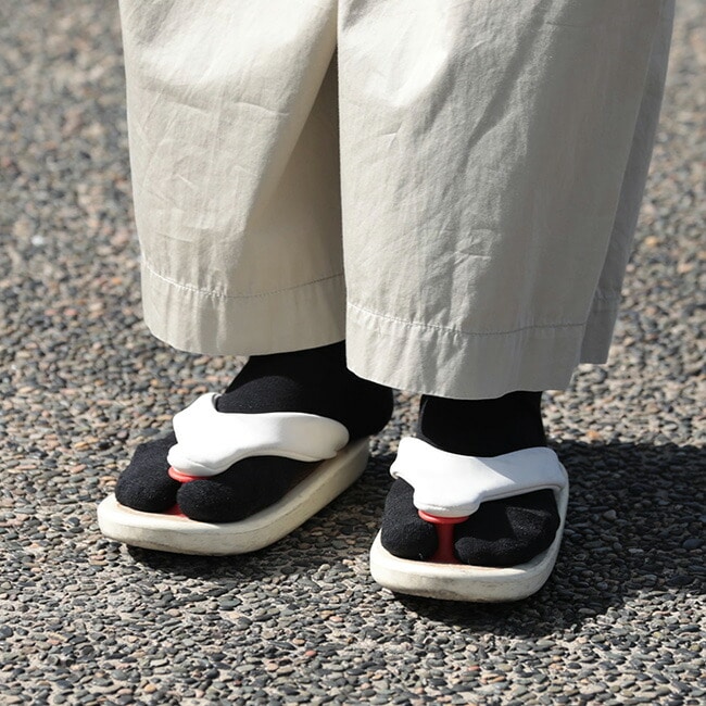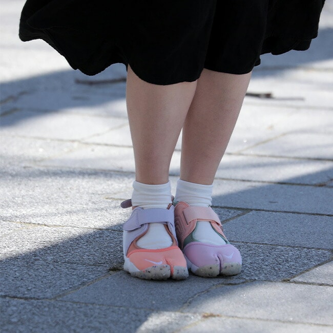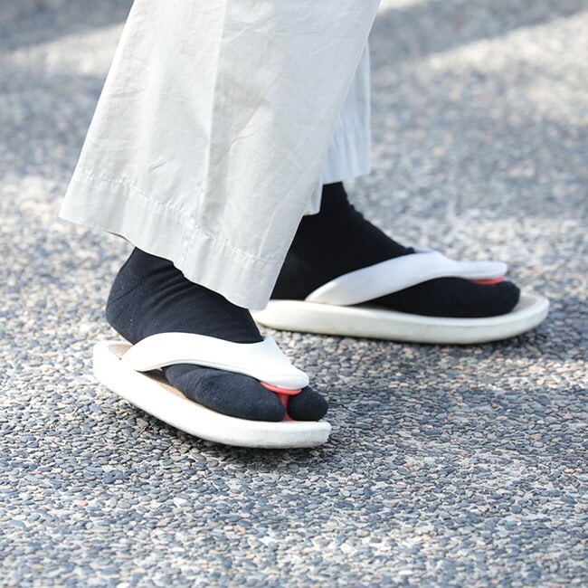 コットンにコーデュラナイロンを混紡した糸を使用しているので耐摩耗性に優れており履き口にはズレ落ちを防止するダウンストップ糸を使用し、ベロをつけていることでフィット感を高めています。つま先とかかとには左右非対称のパイル編みを施し、さらにつま先には、リンキングという技法を使い足先のごろつき感を無くしました。
