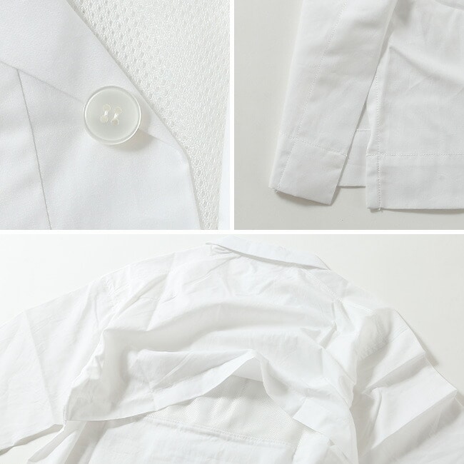 200番のスーピマコットンにシリコンを含浸させ、シワが伸びやすく、洗濯での汚れを落とし易い素材で作られたシャツです。シリコンが含まれていることで、汗で肌に張り付くことが少なく、サラッとした肌あたりに仕上がっています。