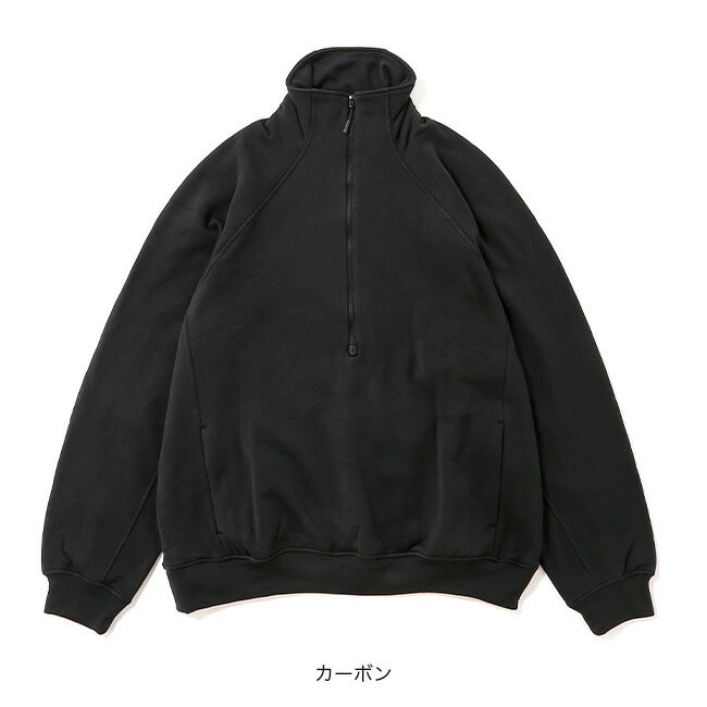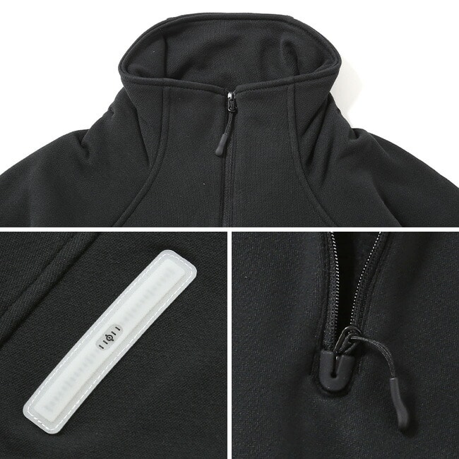 多くの空気を含むため、重ね着することで中綿ライナー同等の保温性を発揮します。衣服内の熱を逃す深めのハーフジップ仕様で、仕切り付きポケットとメジャー付き蓄光プレートを搭載。