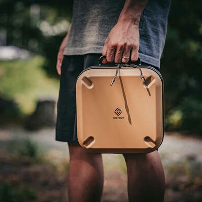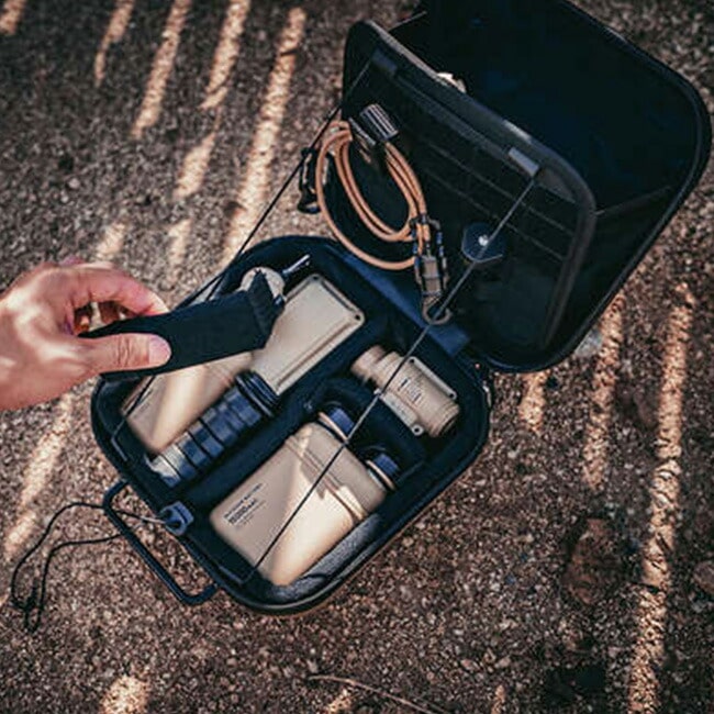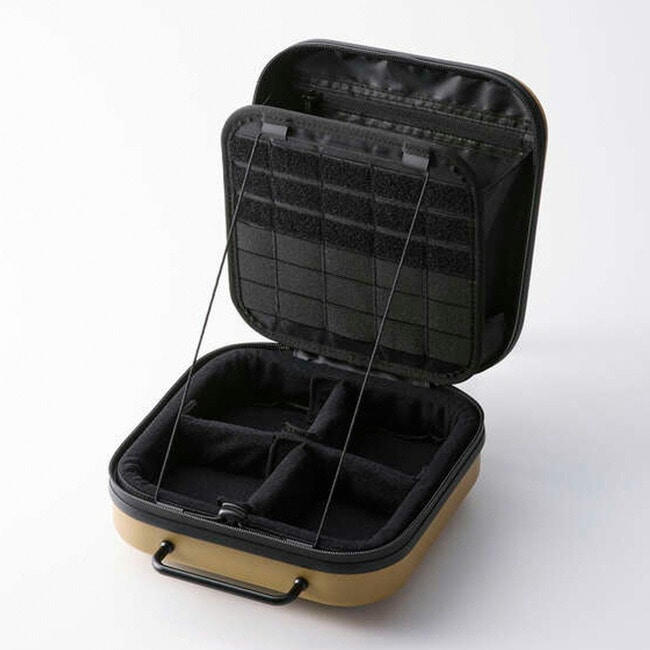 キャンプなどのアウトドアで発生する振動や衝撃からギアを守るハードタイプのギアケース。外装には軽量かつ高耐久なポリカーボネートを採用し、真空成形による高剛性ボディが衝撃や傷、汚れ、水の浸入を防ぎます。