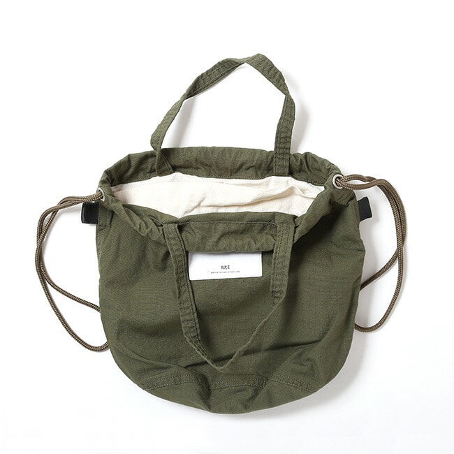 ミリタリーウェアにも採用されるタフなリップストップ生地を使用したバッグ。格子状に織り込まれた補強糸が特徴で、引き裂きや摩耗に強いのが特徴。