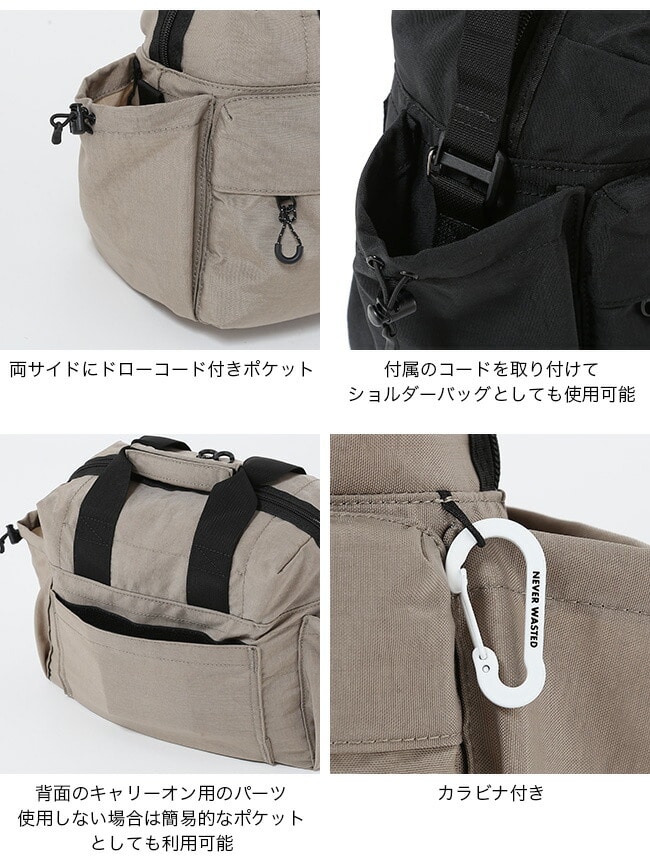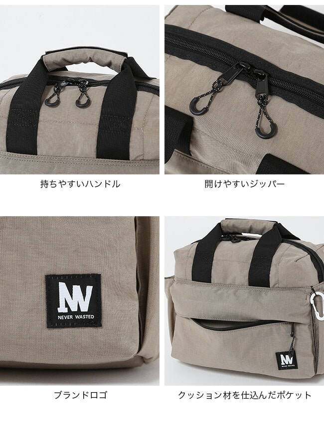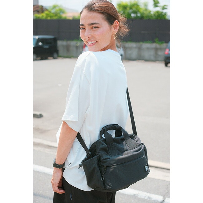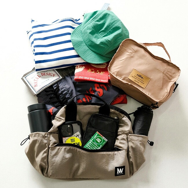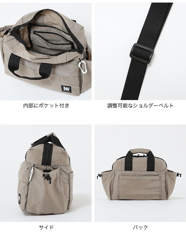 旅先でのセカンドバッグとして、日帰りや一泊であれば単体でも対応可能な便利なバッグです。やわらかい風合いとナチュラルな表情が特徴のナイロン素材を使用しています。