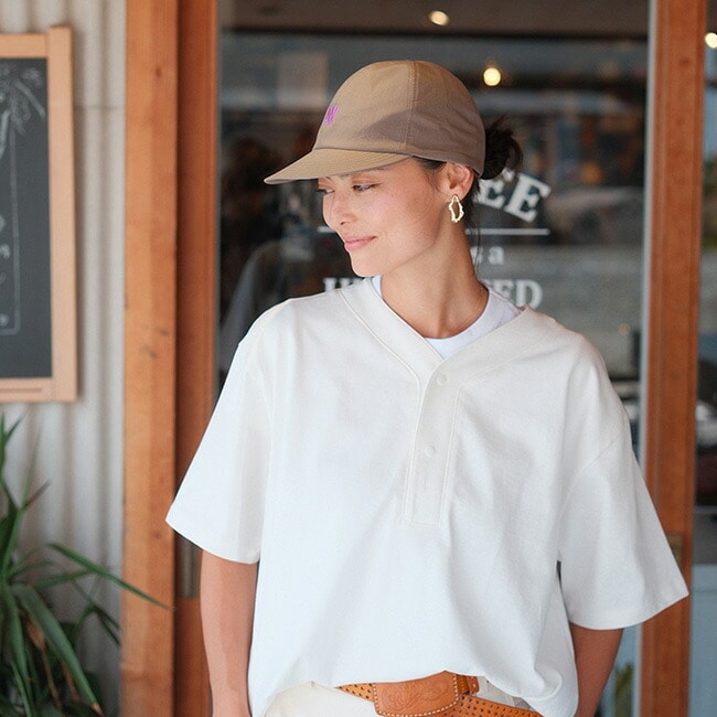 形状はクセの無い6パネル、柔らかいツバ芯を使用しており、ツバを跳ね上げての着用も可能です。素材は特殊技術による非常に細かい通気孔でリップストップの織柄を再現した、2WAYストレッチ、撥水、防シワ、ウォッシャブル性のある多機能素材を採用。