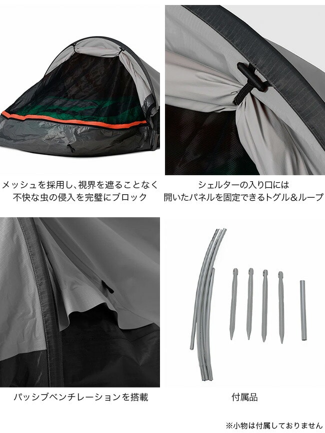 わずか約511gという驚異的な軽さで、テントを設営できない狭い場所や、一分一秒を争うタフな行程における最高のパートナーとなります。