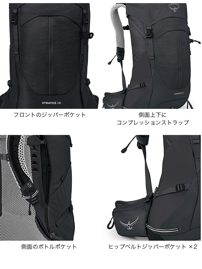 ストラトスはクラシックなデザインに抜群の通気性を融合したハイキングパックの決定版。