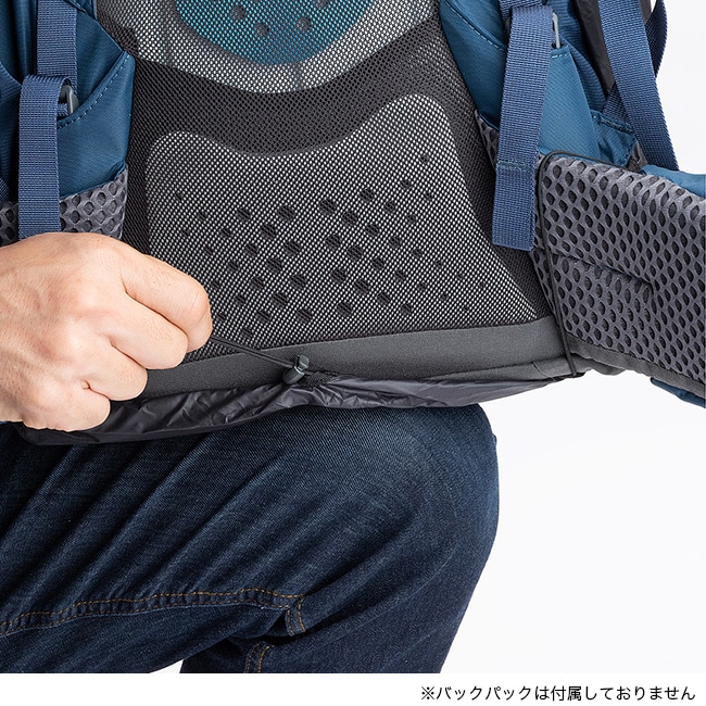 上部のバックルとヒップベルトのバンジーコードにより、強風でも外れにくい構造。小さなスタッフサックに収納でき、必要なときに素早く展開して装着できます。