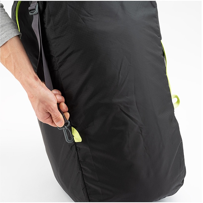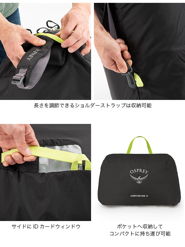 収納できるショルダーストラップ、ネームホルダー、2箇所のキャリーハンドルを備え、鍵を取り付けできるメインジッパーは旅先での保安性を高めます。使用しない時はトップポケットに収納できます。