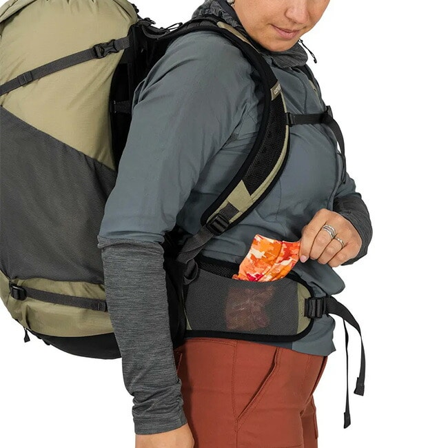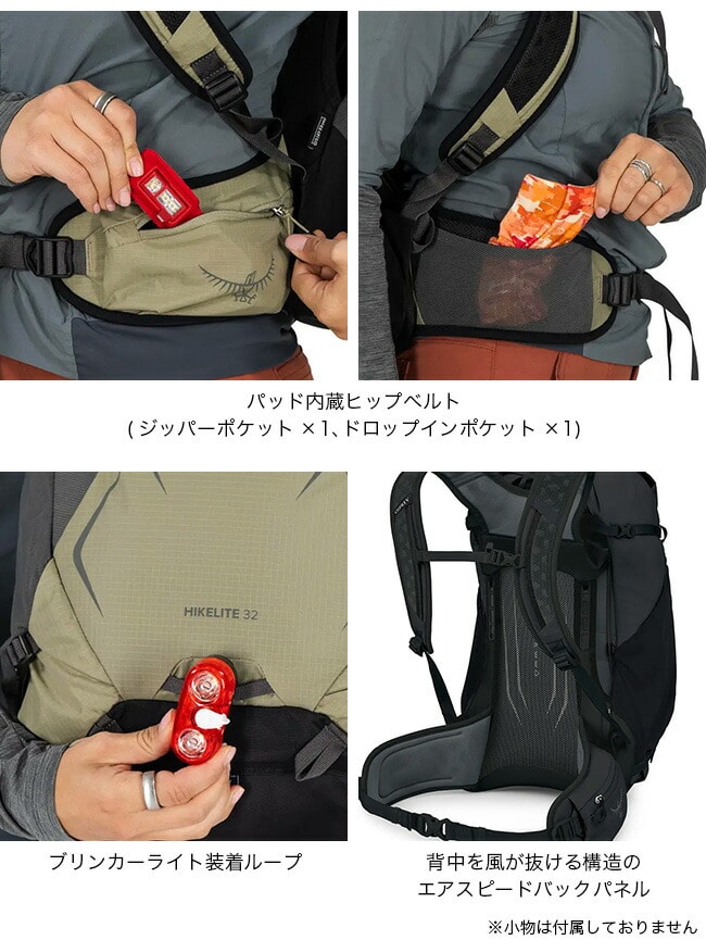 パッド内蔵ヒップベルト(ジッパーポケット×1、ドロップインポケット×1)