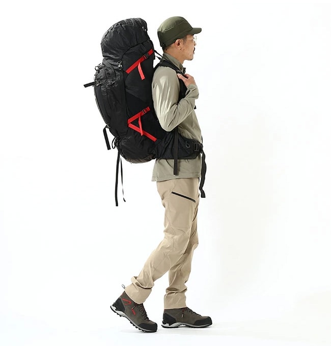 ヒップベルトに荷重を効率よく伝えるライトワイヤーペリフェラルフレーム、通気孔を備えた射出成形のダイカットフォームフレームシートが快適な背負い心地を約束します。