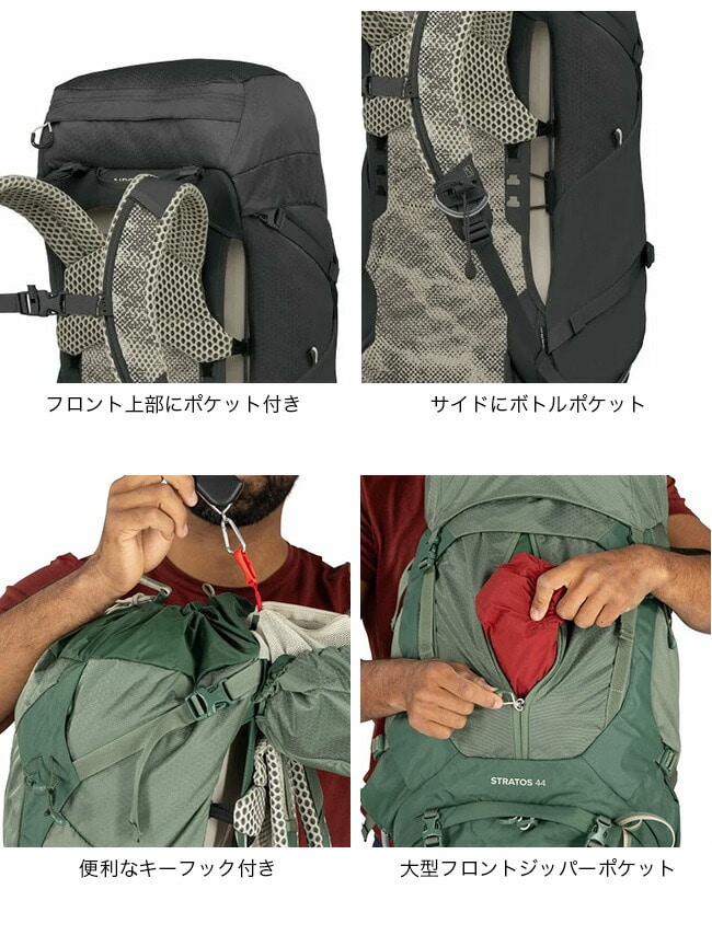 44は1~2泊のバックパッキングやデイハイキングに対応するトップローダーです。※この商品はメンズモデルです。