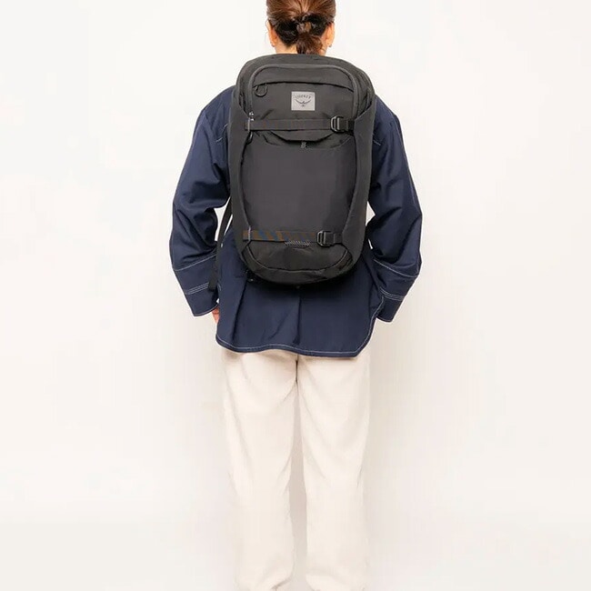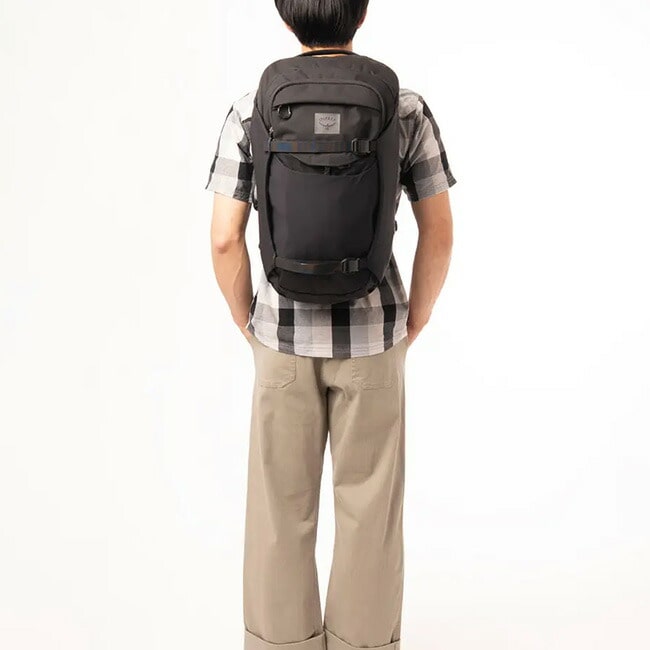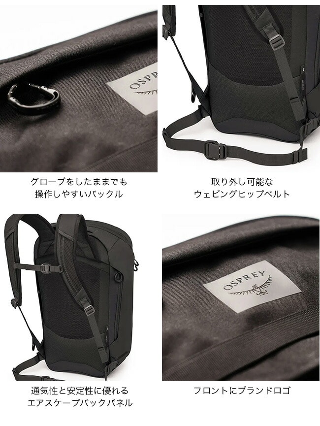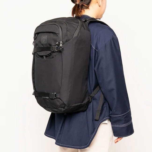 メトロン24は、オスプレーを代表する機能の一つ「ストレートジャケットコンプレッション」をフロントパネルに搭載。荷物量に応じてパックを圧縮できるほか、大きな荷物を外側に固定することもできます。