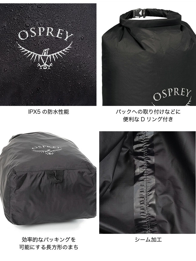 荷物の整理や保護に便利なロールトップの防水ストレージサック。