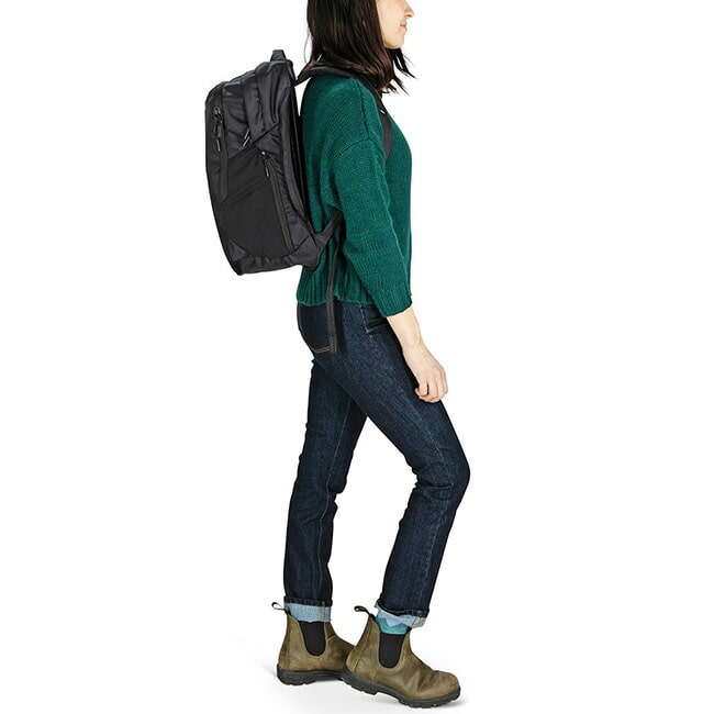 パック背面周囲に内蔵されたワイヤーにピンと貼られたメッシュ地が背中とパックの間に空間を生み、空気の通り道をつくることで快適な背負い心地を実現しています。立体的なフレームはパック下部にも内蔵されており、床においてもパックがしっかりと自立します。