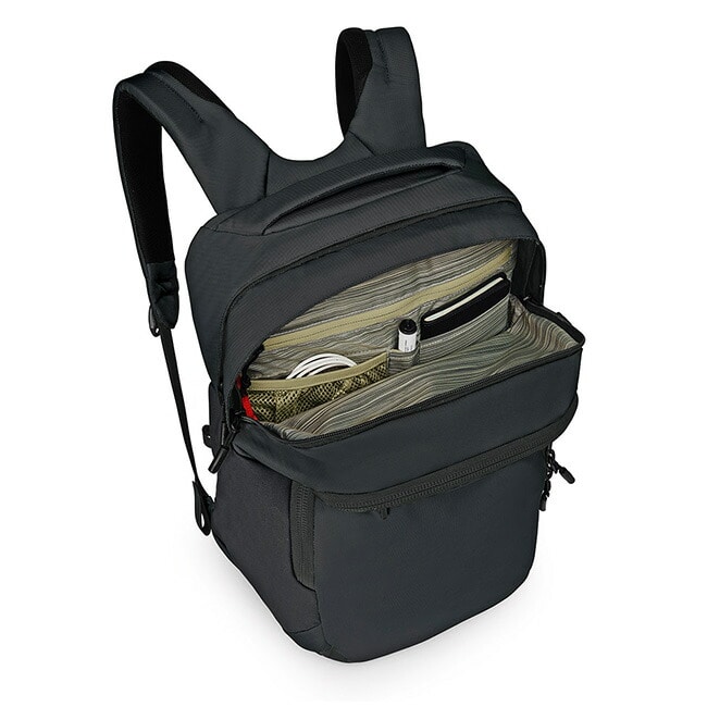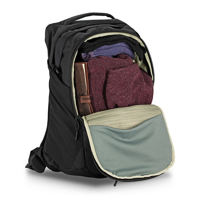 メインの荷室に加え、ノートPCスリーブや書類やペン等の文房具を整理して収納できるポケットを多数装備。