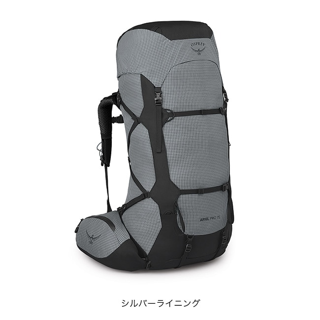 快適でバランスの良い背負い心地と適度な通気性が特長のエアスケープバックパネルを採用した背面システムは、インジェクション成形のフレームシートと身体にフィットさせやすいウェビングによる背面調整の組み合わせで、高荷重に対応しています。