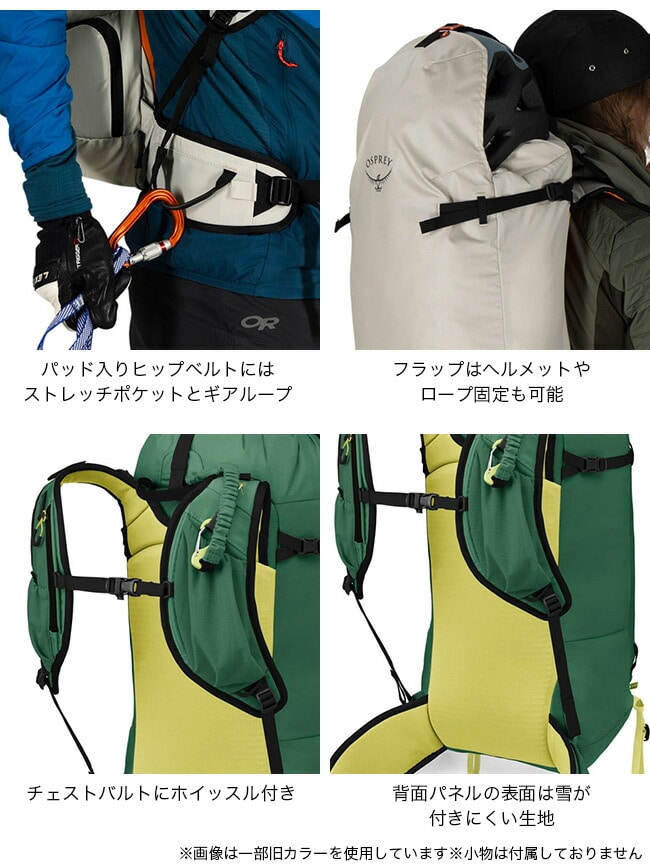 ハイクアップとシール登高を素早く切り替えられる軽さと動きやすさは、残雪期の日帰りツアーに最適です。雪や氷がつきにくい素材のパック背面はしっかりと体に密着し、安定性に優れます。