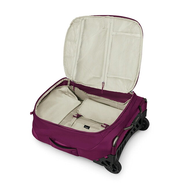 オゾン2ウィールド キャリーオン40Lは、この容量の機内持ち込み用バッグの中で最も軽量で、クリアランスの高いハイロードLTフレームと、さまざまな地形で優れた走行性を発揮する特大の90mmホイールを備えています。
