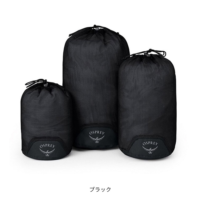 通気性の良いメッシュのスタッフサックセット。荷造りや旅行中のソフトグッズの収納、洗濯物の仕分け、お土産の整理などに重宝します。